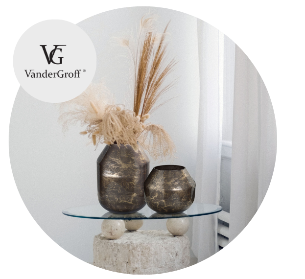 Każdy produkt marki Vandergroff jest efektem starannie przemyślanej koncepcji, łącząc nowoczesność z ponadczasową elegancją. Kształty naszych wazonów są subtelne, a linie czyste i harmonijne, co sprawia, że stanowią doskonały element dekoracyjny w każdym wnętrzu.