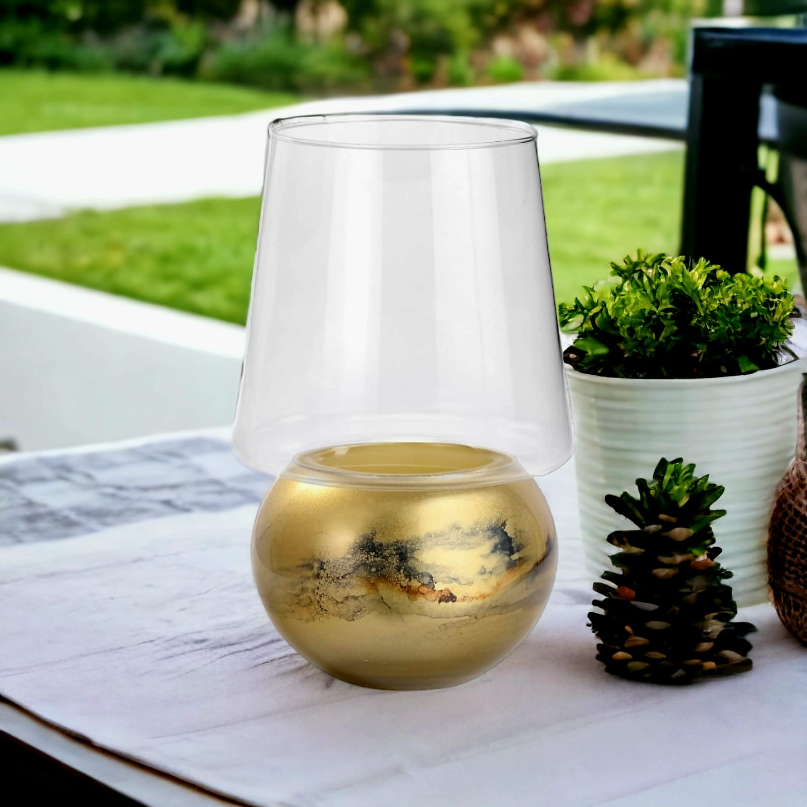 Świeca francuska marki VanderGroff – VG Świeca Francuska/Gold została wyprodukowana z najwyższej jakości szkła i zdobiona ręcznie w luksusowym złotym odcieniu, który wnosi do wnętrza blask i elegancję. Jej subtelny, ale efektowny design czyni ją doskonałym dodatkiem zarówno do nowoczesnych, jak i klasycznych wnętrz. Świetnie sprawdzi się jako element dekoracyjny podczas wyjątkowych okazji, wprowadzając ciepło i wyrafinowany styl do każdej przestrzeni. Świeca zawiera 500 g wysokiej jakości wosku zapachowego o wyjątkowym aromacie perfum SummerShine by VanderGroff. Ten luksusowy zapach wprowadzi do Twojego wnętrza niesamowitą aurę pełną świeżości i elegancji, idealną do stworzenia przytulnej i relaksującej atmosfery.