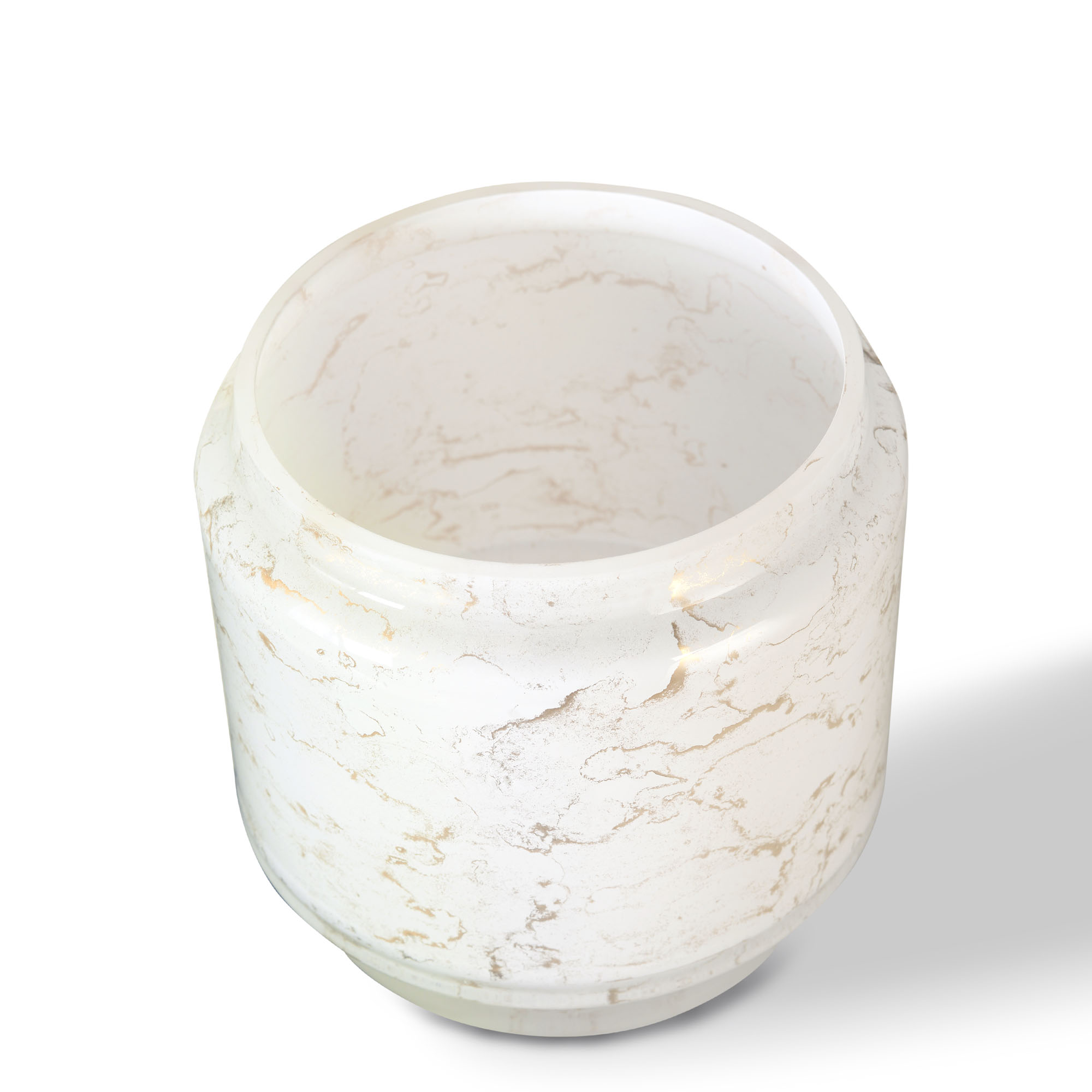 Szklany wazon marki VanderGroff – VG20/White został wykonany z wysokiej jakości szkła i dekorowany ręcznie z niezwykłą precyzją w delikatne bieli ze złotym marmurem, który wnosi do wnętrza blask i elegancję. Jego delikatny wygląd doskonale wpasowuje się w różne style wnętrzarskie, od skandynawskiego po boho. Idealny do wnętrz i przestrzeni zewnętrznych, tworząc ciepły, kojący klimat.