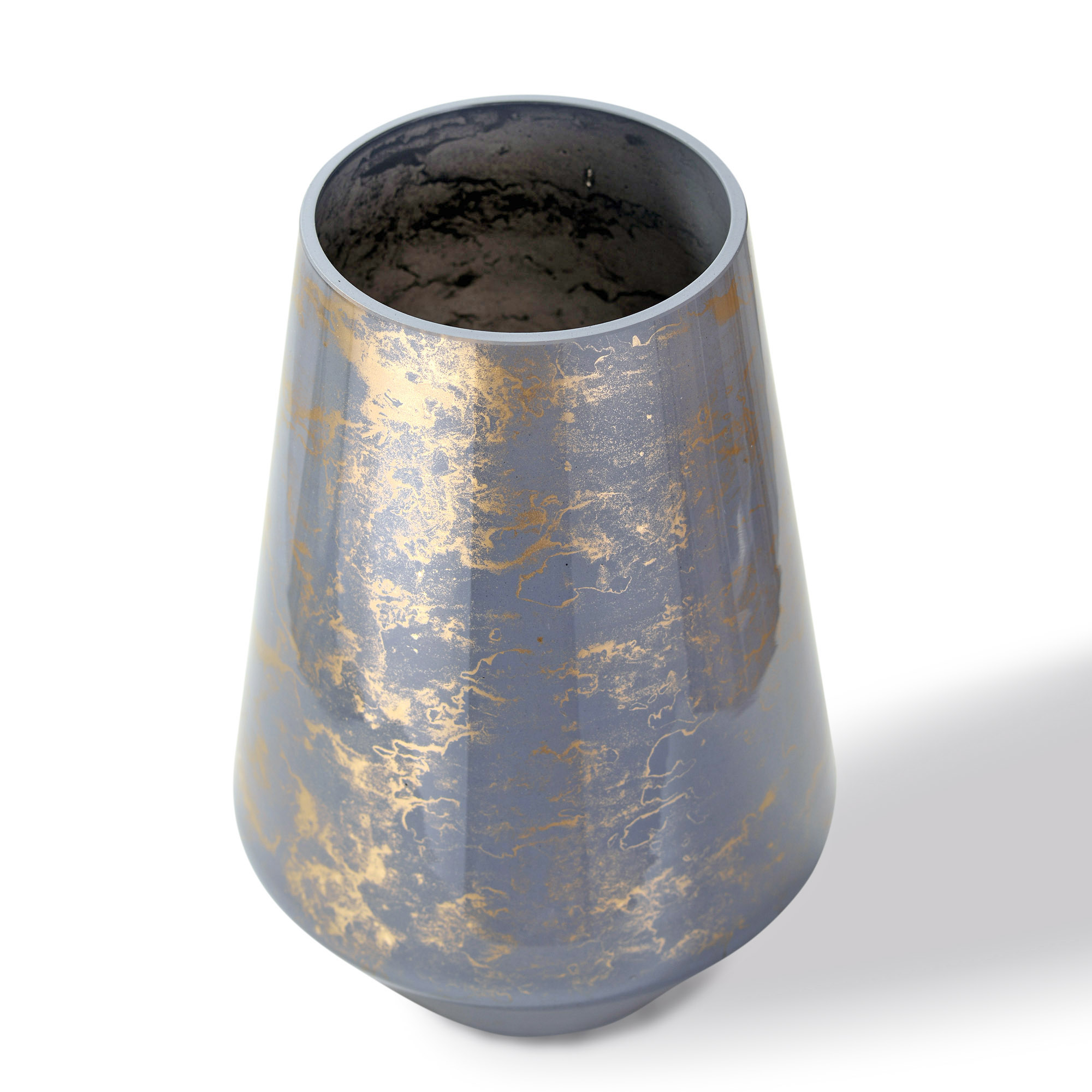 Szklany wazon marki VanderGroff – VG27 Diament/Gray został wykonany z wysokiej jakości szkła i dekorowany ręcznie z niezwykłą precyzją. Wyjątkowy szary odcień ze złotym marmurem nadaje mu luksusu i elegancji. Ten wazon stanowi dodatek jak do nowoczesnych tak i do tradycyjnych wnętrz.