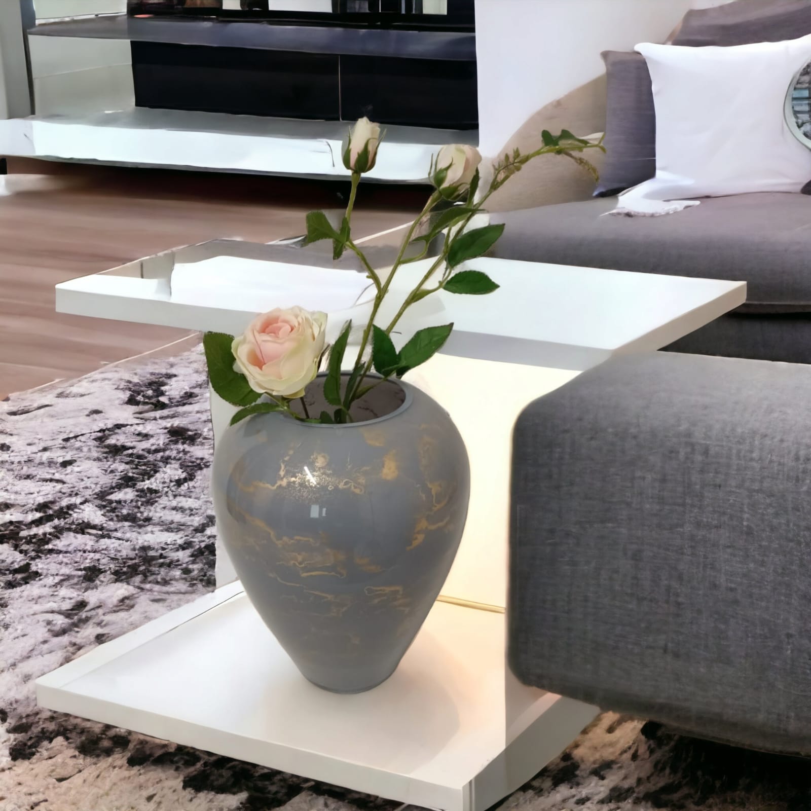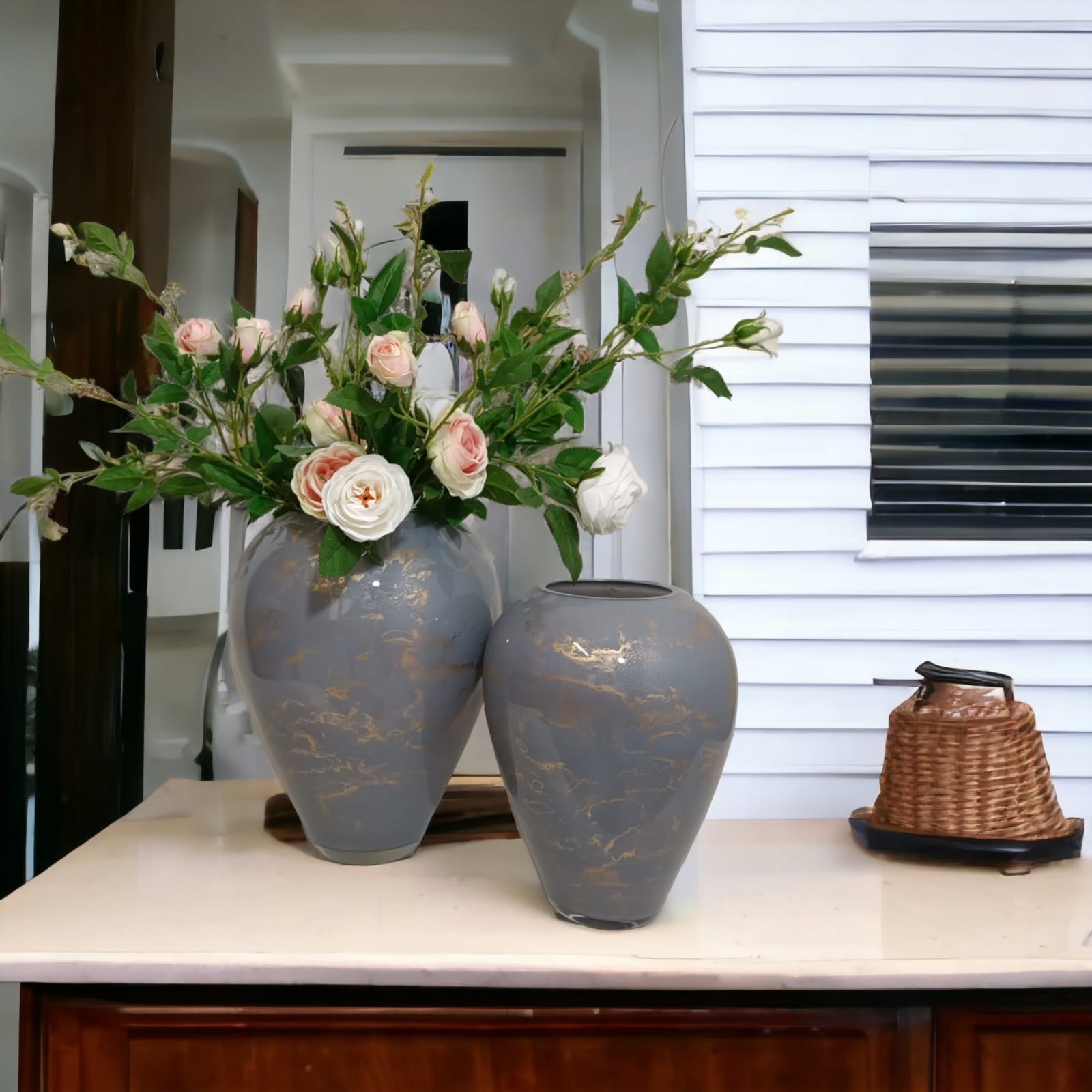 Szklany wazon marki VanderGroff – VG33/Gray został wykonany z wysokiej jakości szkła i dekorowany ręcznie z niezwykłą precyzją. Wyjątkowy szary odcień ze złotym marmurem nadaje mu luksusu i elegancji. Ten wazon stanowi dodatek jak do nowoczesnych tak i do tradycyjnych wnętrz.