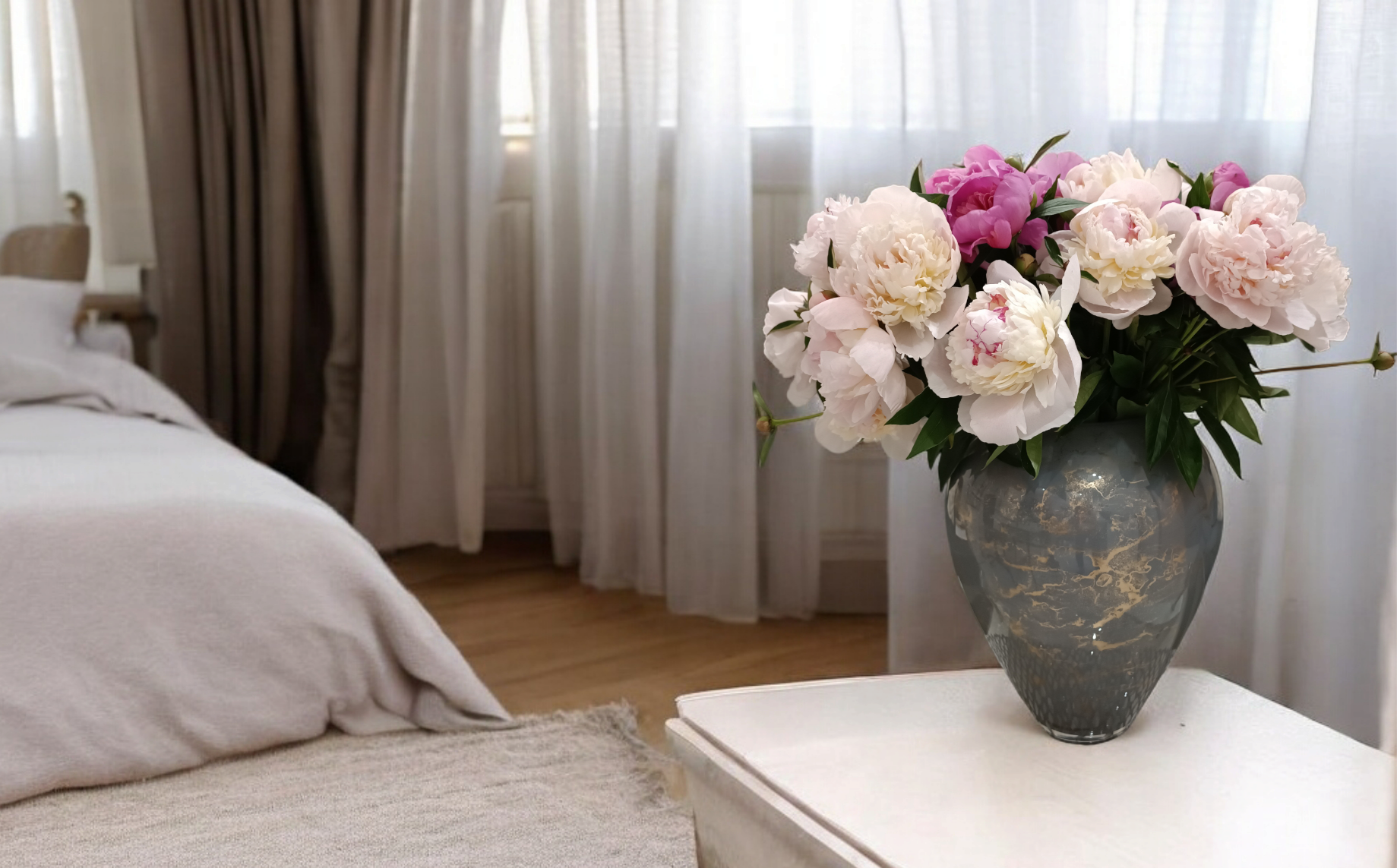 - Średnica: 25 cm – szeroka średnica wazonu, która sprawia, że jest on idealny do dużych bukietów, wprowadzając do wnętrza harmonię i styl.