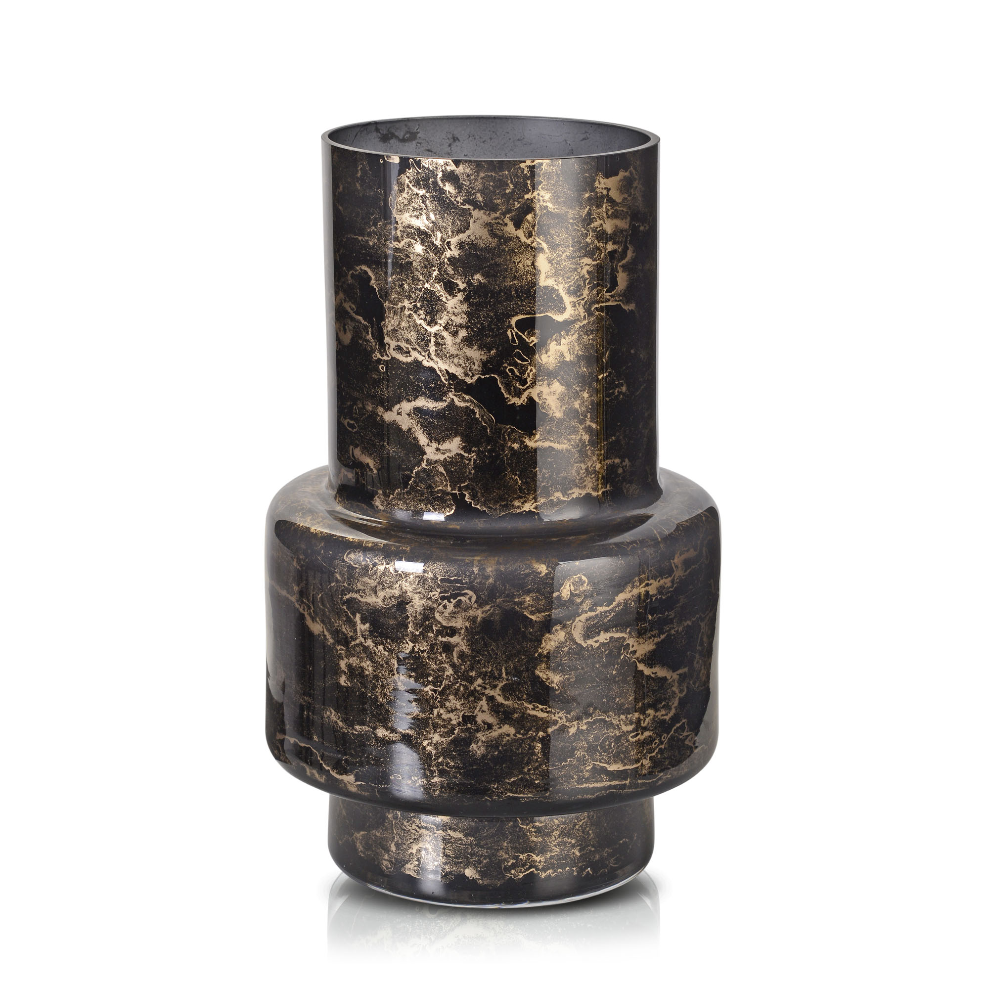 Szklany wazon marki VanderGroff – VG34/Black to wyjątkowa dekoracja, która łączy nowoczesny design z klasycznym luksusem. Wykonany z wysokiej jakości szkła, nadając wnętrzom elegancki i stylowy wygląd. Jego głęboki czarny kolor w połączeniu z subtelnym, złotym marmurowym wzorem tworzy niezwykle efektowną kompozycję, która przyciąga wzrok i stanowi elegancki akcent w każdym pomieszczeniu.