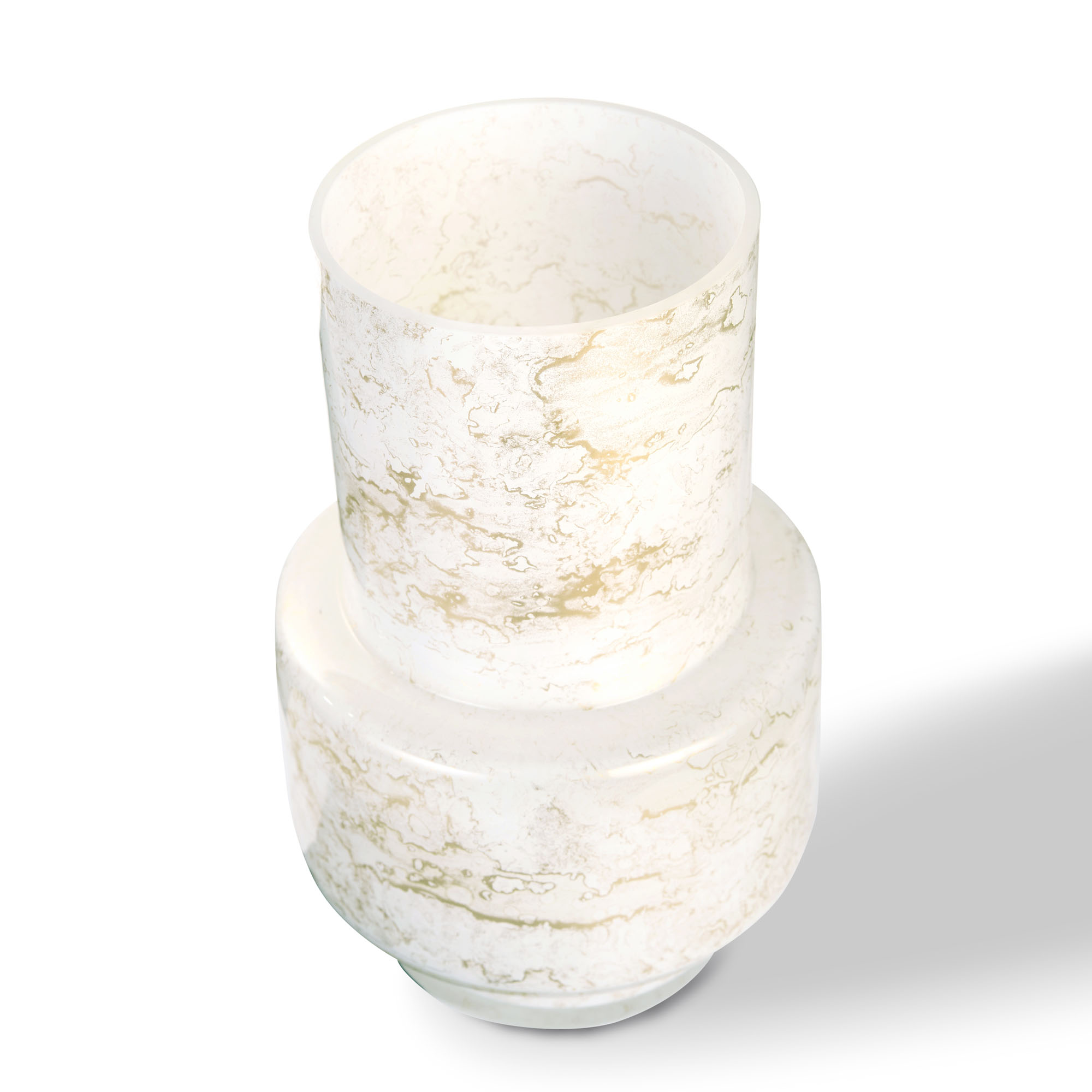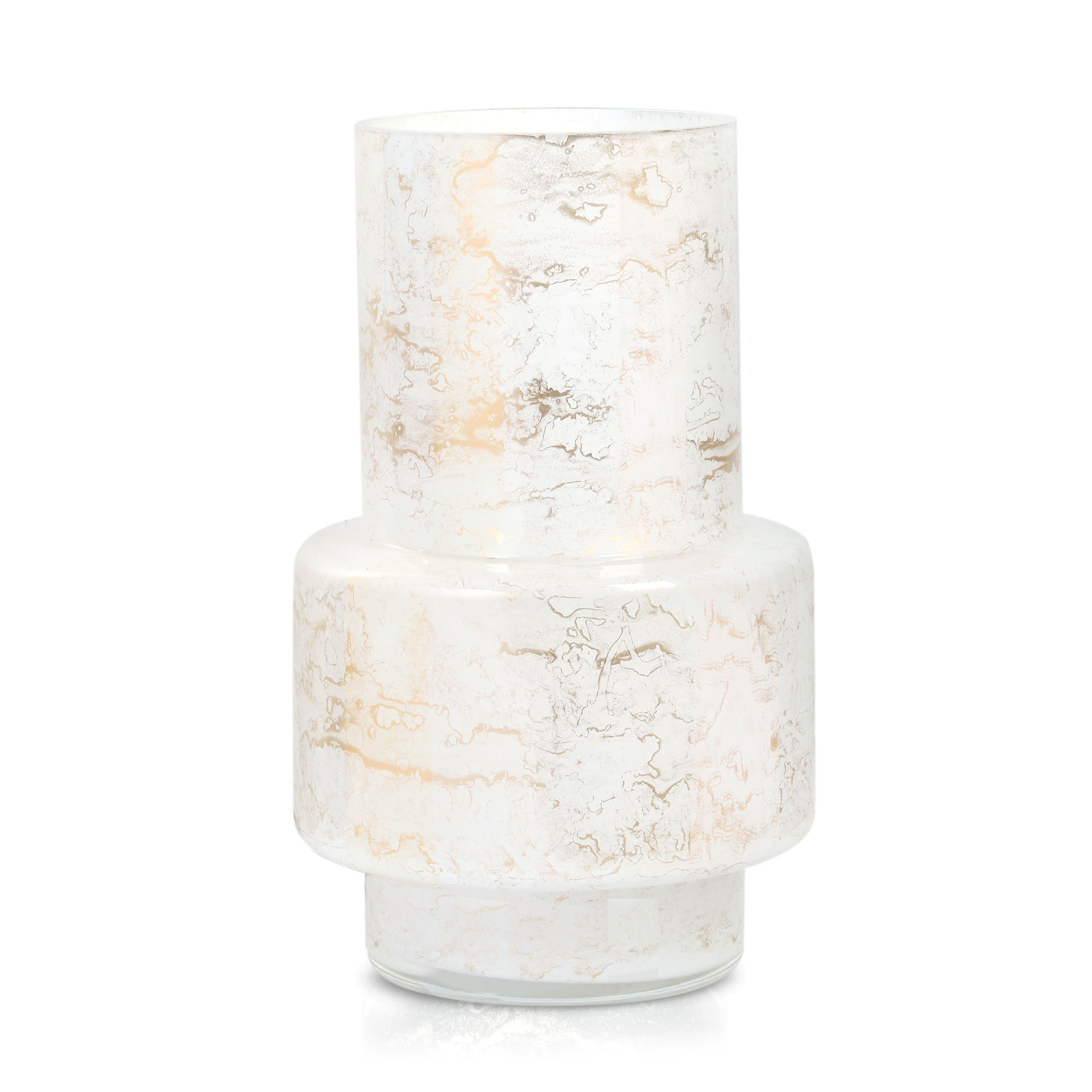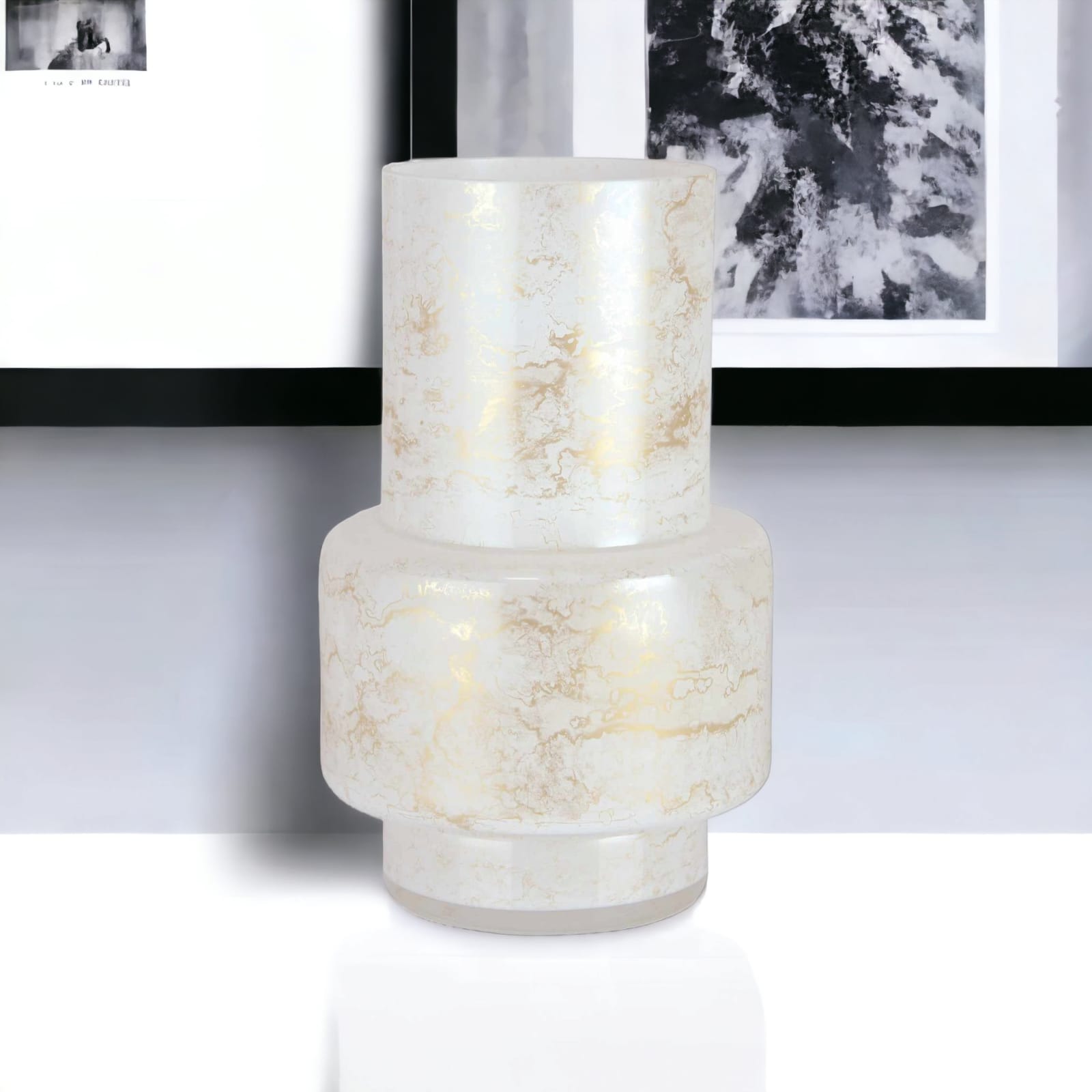 Duży szklany wazon marki VanderGroff – VG34/White został wykonany z wysokiej jakości szkła i dekorowany ręcznie z niezwykłą precyzją w delikatne bieli ze złotym marmurem, który wnosi do wnętrza blask i elegancję. Jego delikatny wygląd doskonale wpasowuje się w różne style wnętrzarskie, od skandynawskiego po boho. Idealny do wnętrz i przestrzeni zewnętrznych, tworząc ciepły, kojący klimat.