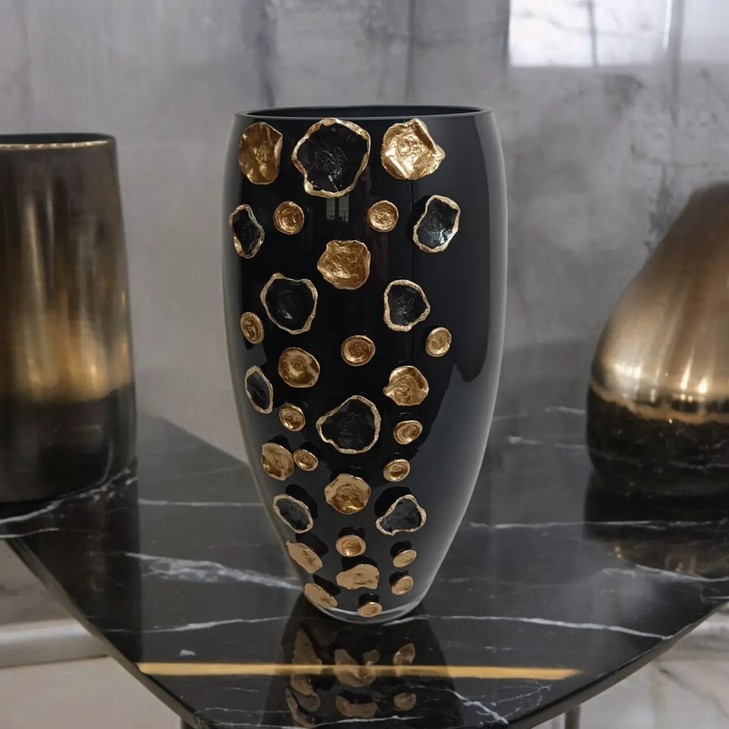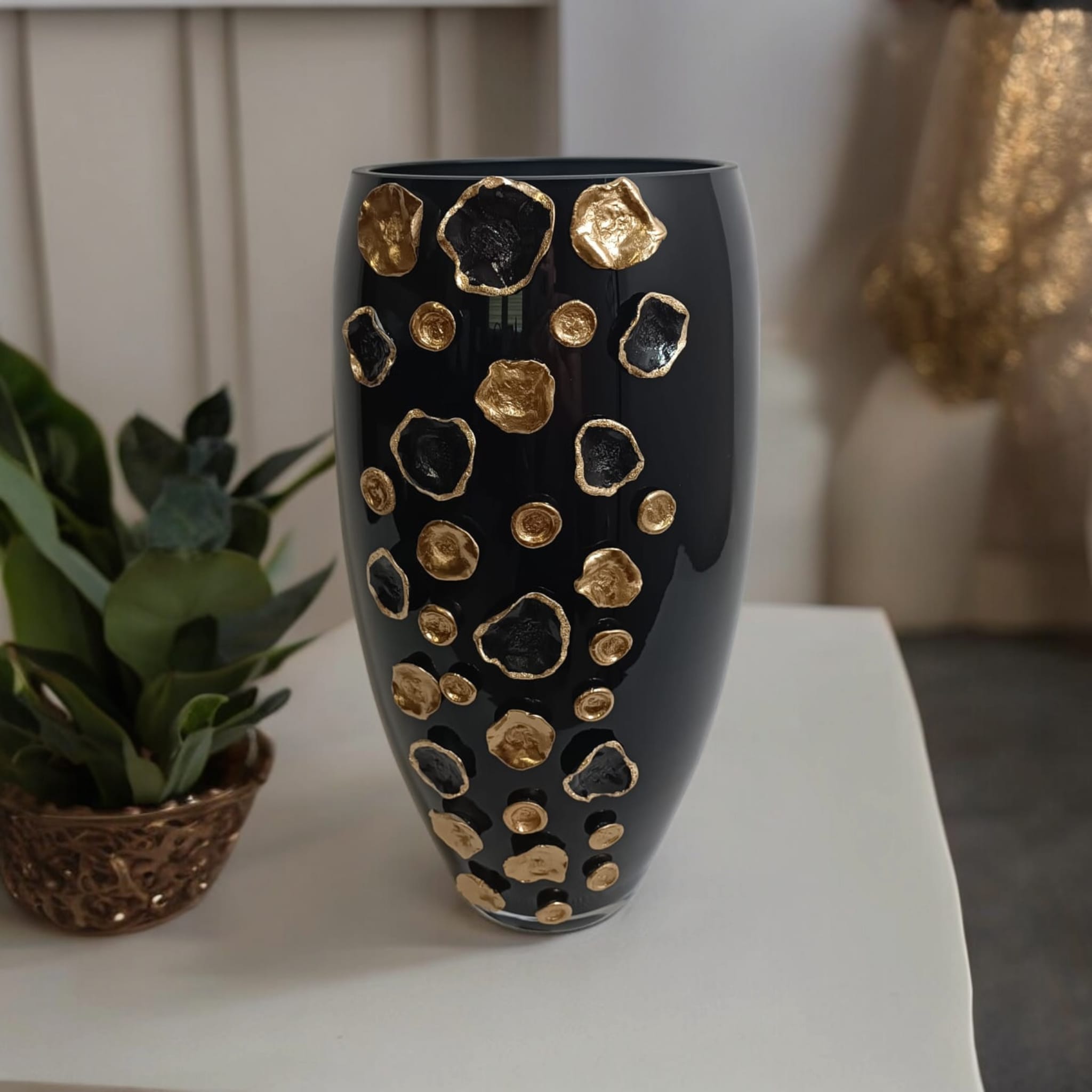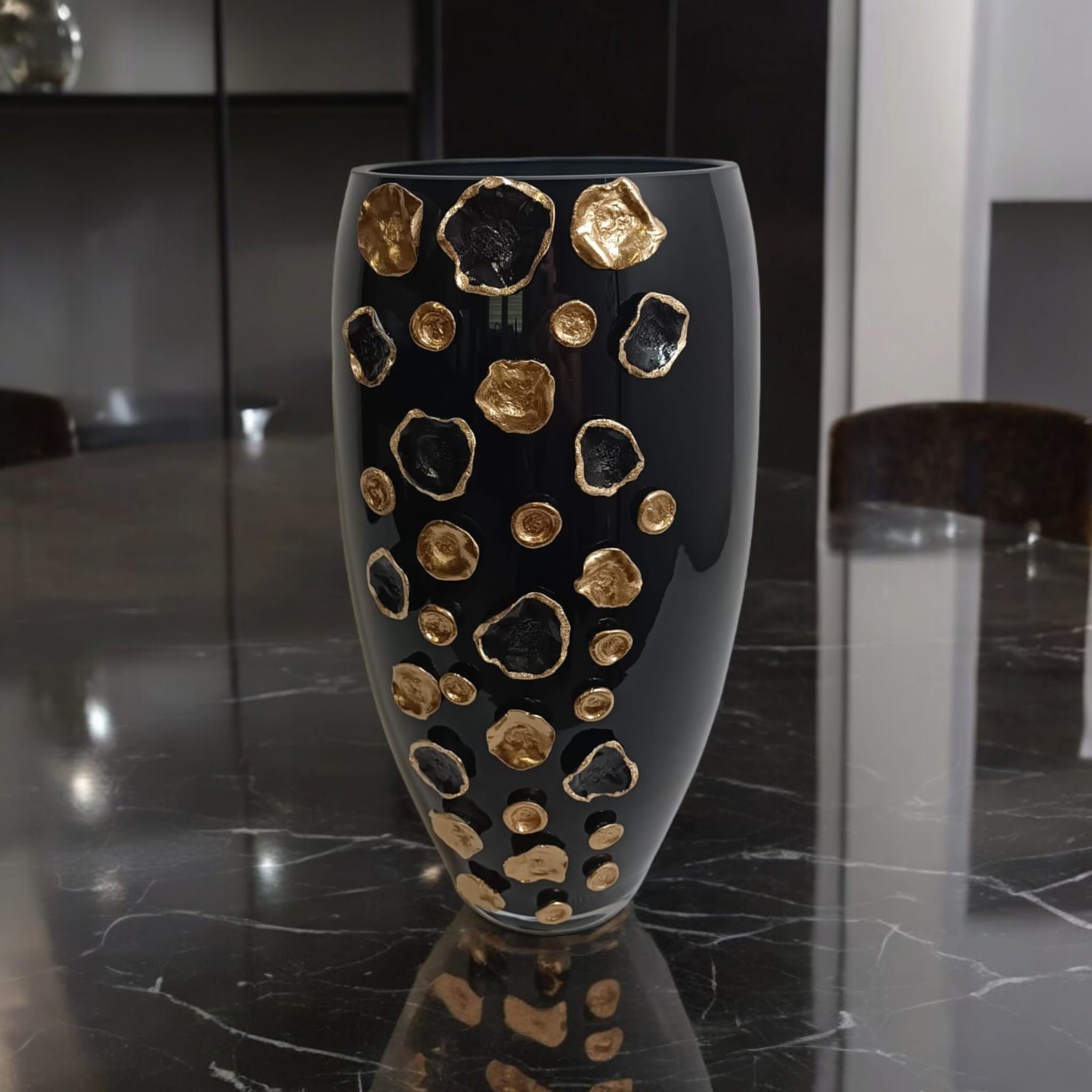 Szklany wazon marki VanderGroff – VG38B/DBG z serii Exclusive Black to symbol elegancji i nowoczesnego stylu. Jego wyjatkowy design, wzbogacony o eleganckie czarno-złote dodatki, nadaje wnętrzu unikalny charakter oraz luksusowy akcent. Idealny wybór dla tych, którzy cenią wysoką jakość i estetykę w swoim domu czy biurze.